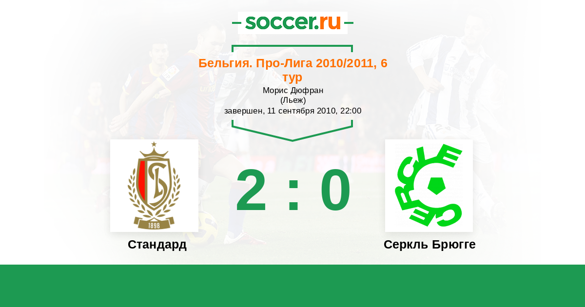 Бельгия. Про-Лига 26.12.2010 Серкль Брюгге Логотип футбольный клуб Серкль Брюгге 1:0 Логотип футбольный клуб Стандард (Льеж) Стандард