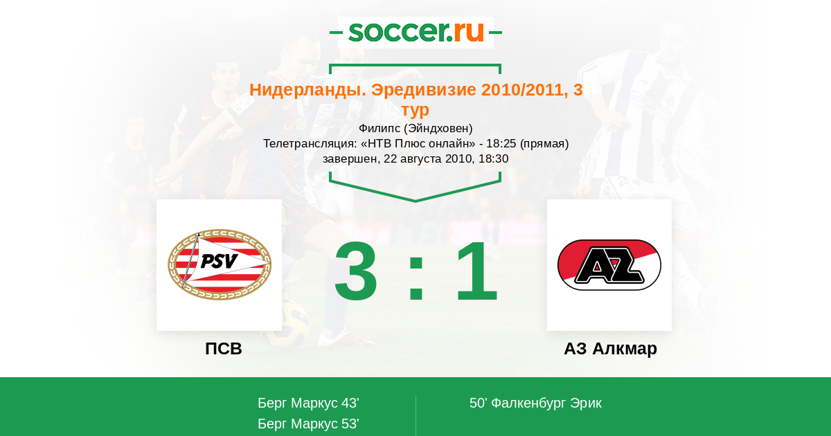 Протокол матча ПСВ против АЗ Алкмар