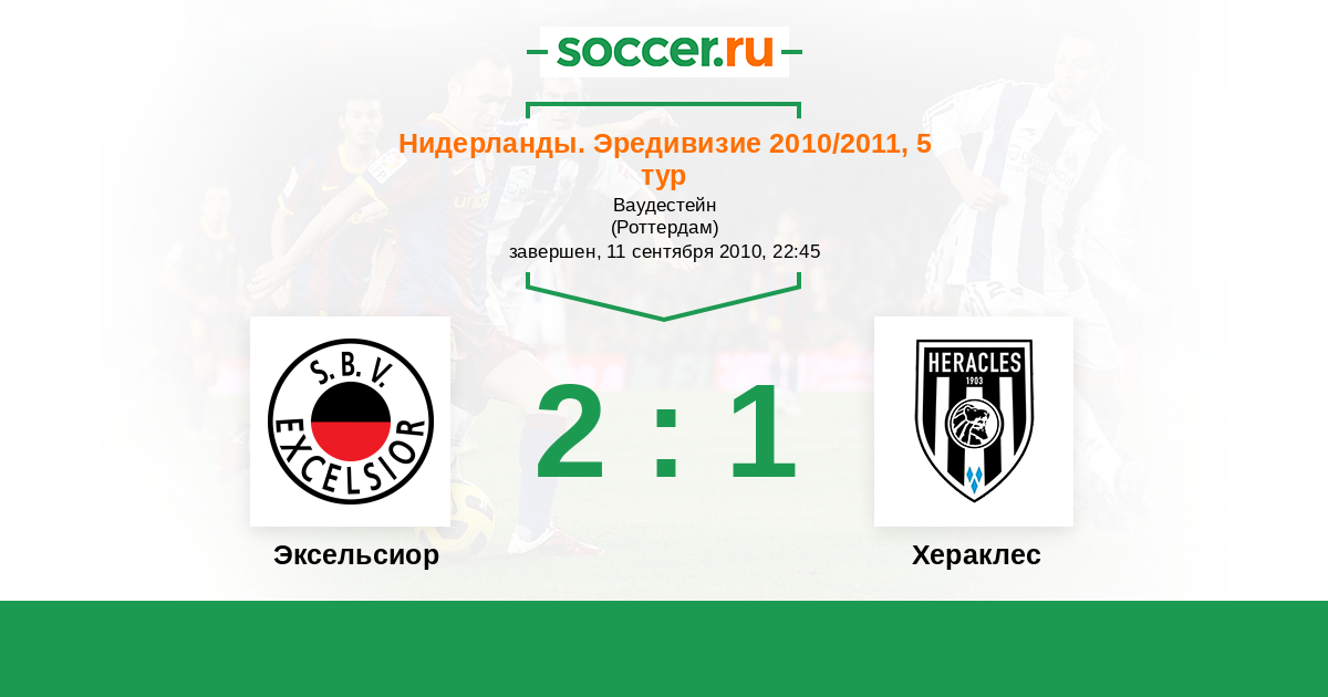 Нидерланды. Эредивизи 22.10.2011 Эксельсиор Логотип футбольный клуб Эксельсиор (Роттердам) 0:2 Логотип футбольный клуб Хераклес (Алмело) Хераклес