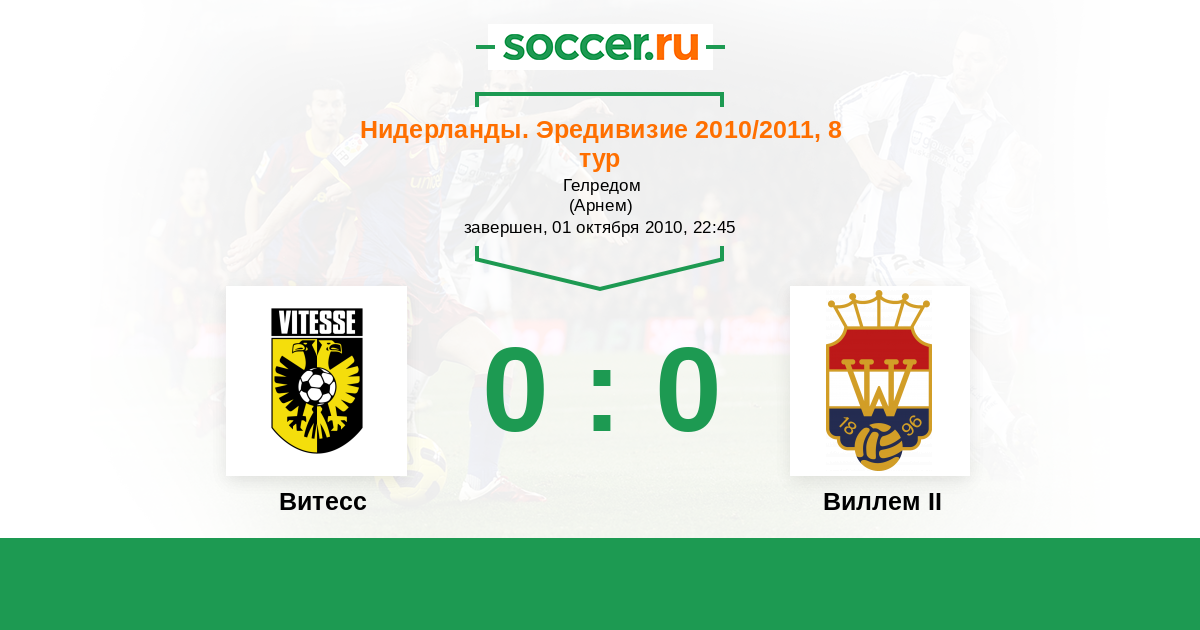 Нидерланды. Эредивизи 27.03.2010 Витесс Логотип футбольный клуб Витесс (Арнем) 2:1 Логотип футбольный клуб Виллем II (Тилбург) Виллем II
