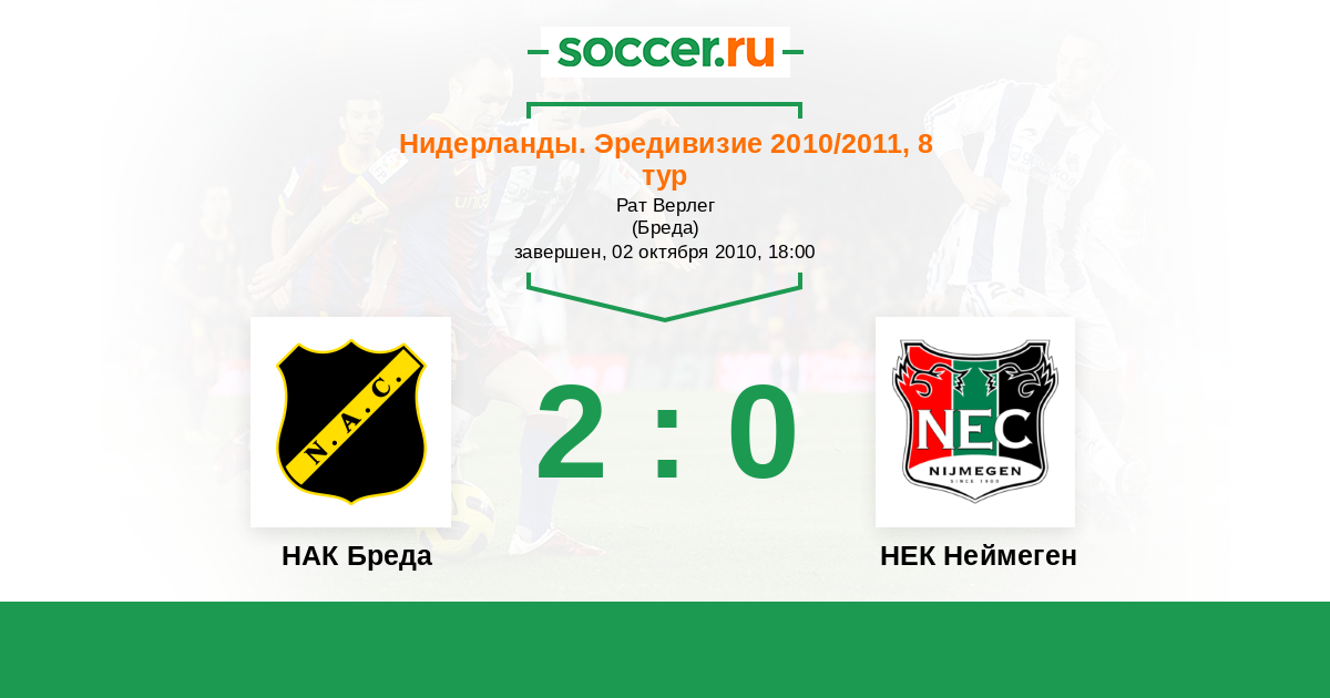 Нидерланды. Эредивизи 12.02.2010 НЕК Неймеген Логотип футбольный клуб НЕК Неймеген 4:2 Логотип футбольный клуб НАК Бреда НАК Бреда