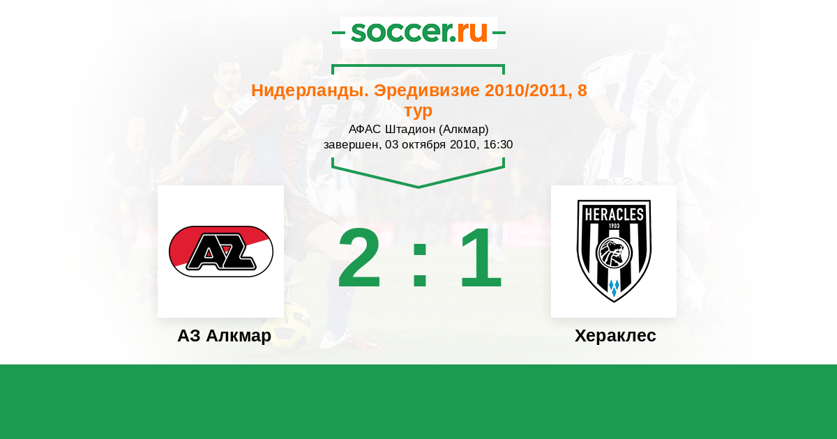 Нидерланды. Эредивизи 30.10.2011 Хераклес Логотип футбольный клуб Хераклес (Алмело) 0:1 Логотип футбольный клуб АЗ Алкмар АЗ Алкмар