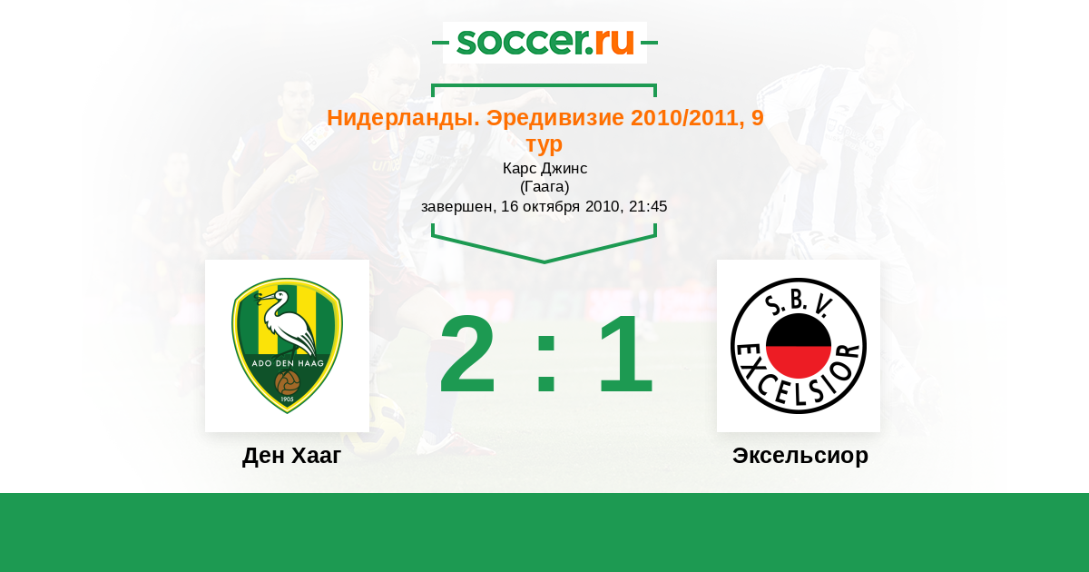 Нидерланды. Эредивизи 30.01.2011 Эксельсиор Логотип футбольный клуб Эксельсиор (Роттердам) 1:5 Логотип футбольный клуб Ден Хааг (Гаага) Ден Хааг