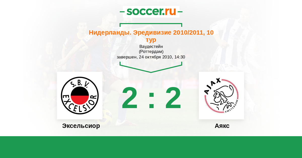 Нидерланды. Эредивизи 24.04.2011 Аякс Логотип футбольный клуб Аякс (Амстердам) 4:1 Логотип футбольный клуб Эксельсиор (Роттердам) Эксельсиор