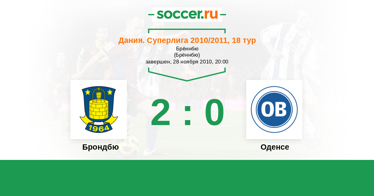 Дания. Суперлига 06.11.2011 Оденсе Логотип футбольный клуб Оденсе 0:0 Логотип футбольный клуб Брондбю (Брённбю) Брондбю