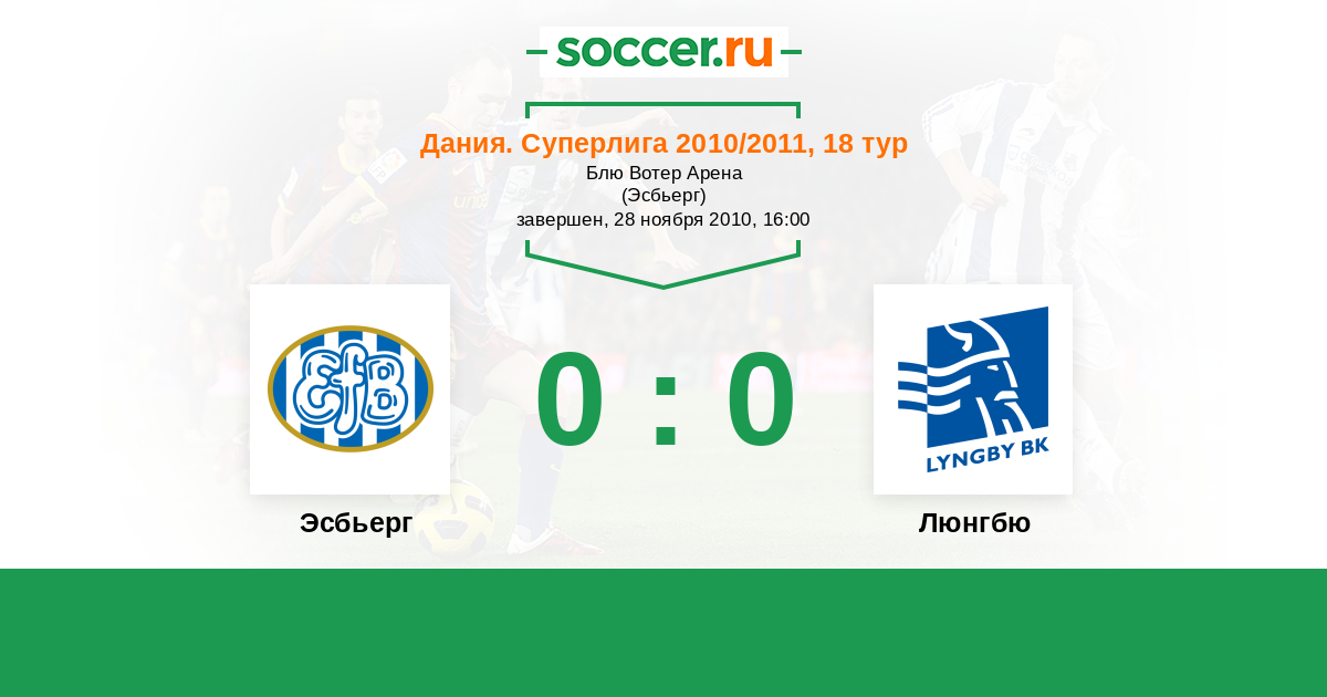 Дания. Суперлига 12.09.2010 Эсбьерг Логотип футбольный клуб Эсбьерг 2:3 Логотип футбольный клуб Люнгбю (Конгес Люнгбю) Люнгбю