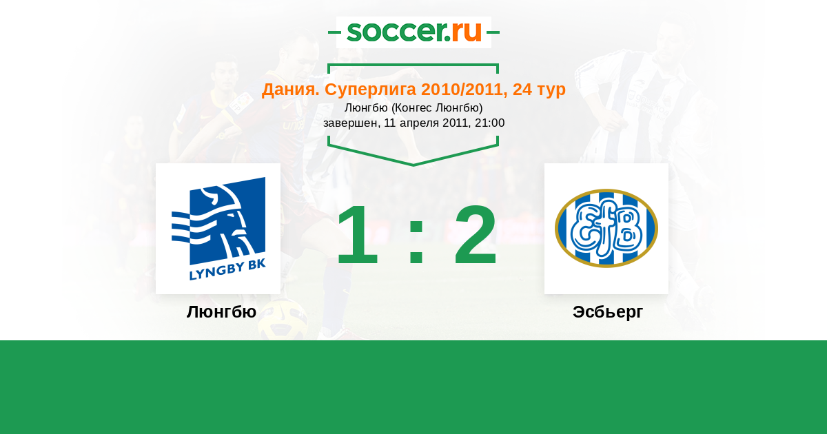 Дания. Суперлига 12.09.2010 Эсбьерг Логотип футбольный клуб Эсбьерг 2:3 Логотип футбольный клуб Люнгбю (Конгес Люнгбю) Люнгбю