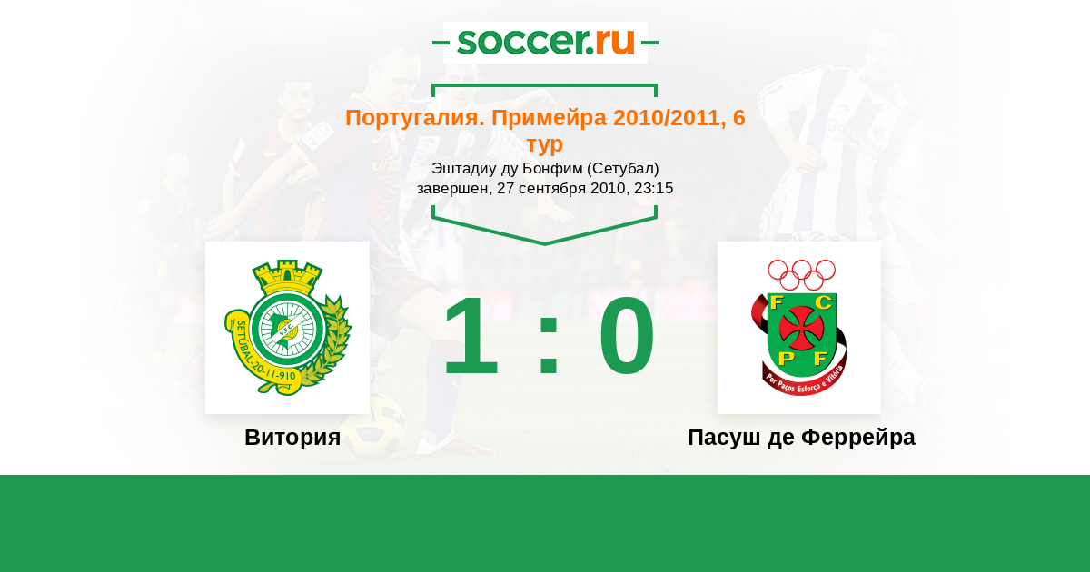 Португалия. Примейра 26.02.2011 Пасуш де Феррейра Логотип футбольный клуб Пасуш де Феррейра 2:0 Логотип футбольный клуб Витория (Сетубал) Витория