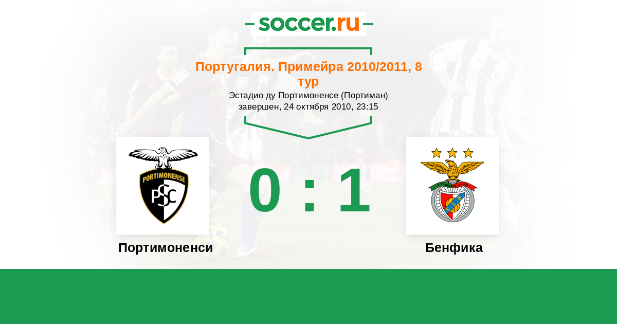 Португалия. Примейра 13.03.2011 Бенфика Логотип футбольный клуб Бенфика (Лиссабон) 1:1 Логотип футбольный клуб Портимоненси (Портиман) Портимоненси