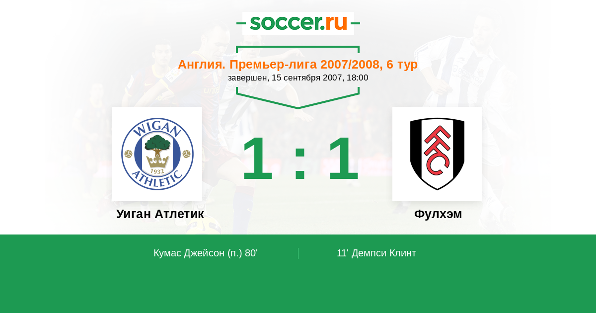 Протокол матча Уиган Атлетик против Фулхэм
