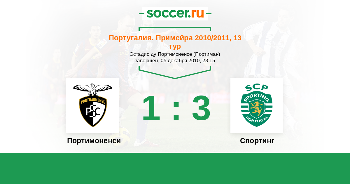 Португалия. Примейра 30.04.2011 Спортинг Логотип футбольный клуб Спортинг (Лиссабон) 2:1 Логотип футбольный клуб Портимоненси (Портиман) Портимоненси