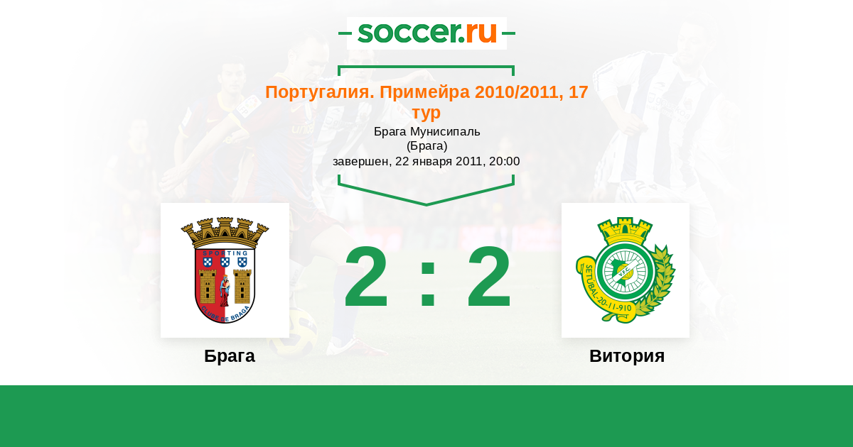 Португалия. Примейра 07.03.2010 Витория Логотип футбольный клуб Витория (Сетубал) 0:0 Логотип футбольный клуб Брага Брага
