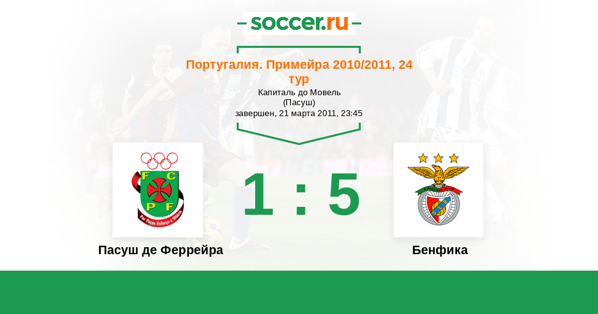 Португалия. Примейра 01.10.2011 Бенфика Логотип футбольный клуб Бенфика (Лиссабон) 4:1 Логотип футбольный клуб Пасуш де Феррейра Пасуш де Феррейра