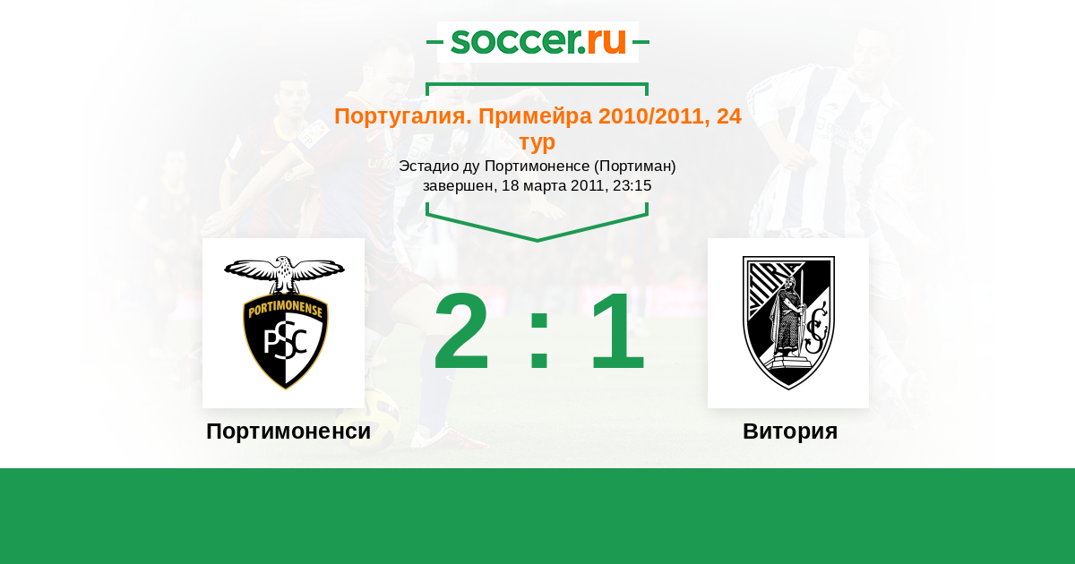 Португалия. Примейра 01.11.2010 Витория Логотип футбольный клуб Витория (Гимараеш) 2:0 Логотип футбольный клуб Портимоненси (Портиман) Портимоненси
