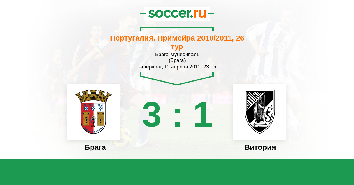 Португалия. Примейра 02.04.2010 Брага Логотип футбольный клуб Брага 3:2 Логотип футбольный клуб Витория (Гимараеш) Витория