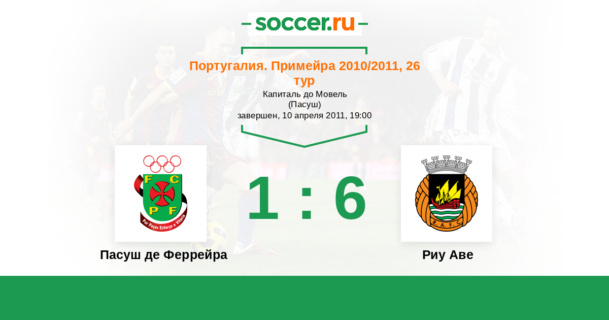 Португалия. Примейра 08.04.2006 Пасуш де Феррейра Логотип футбольный клуб Пасуш де Феррейра 2:1 Логотип футбольный клуб Риу Аве (Вила-ду-Конди) Риу Аве