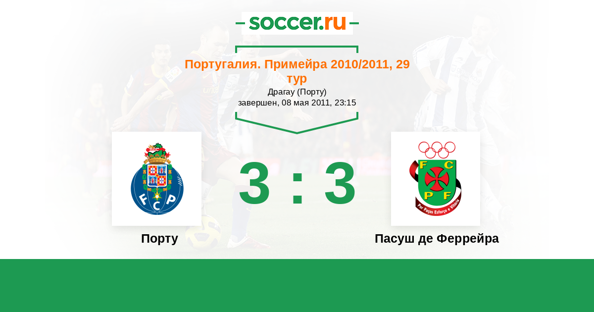 Португалия. Примейра 25.03.2012 Пасуш де Феррейра Логотип футбольный клуб Пасуш де Феррейра 1:1 Логотип футбольный клуб Порту Порту