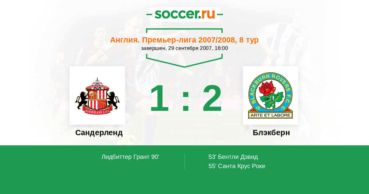 Протокол матча Сандерленд против Блэкберн