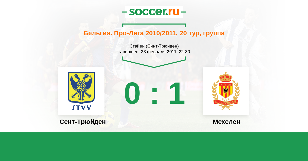 Бельгия. Про-Лига 02.04.2011 Мехелен Логотип футбольный клуб Мехелен 1:1 Логотип футбольный клуб Сент-Трюйден (Синт-Трёйден) Сент-Трюйден