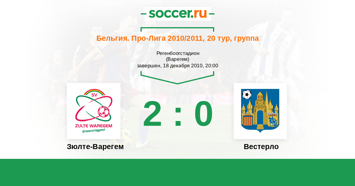 Бельгия. Про-Лига 10.04.2011 Зюлте-Варегем Логотип футбольный клуб Зюлте-Варегем 1:1 Логотип футбольный клуб Вестерло Вестерло