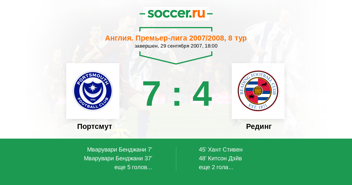 Протокол матча Портсмут против Рединг