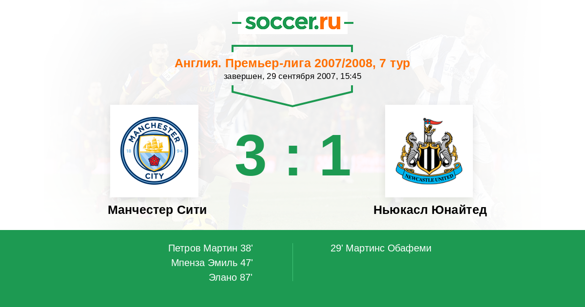 Протокол матча Манчестер Сити против Ньюкасл Юнайтед