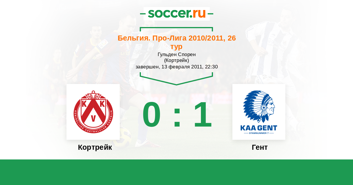 Бельгия. Про-Лига 16.10.2010 Гент Логотип футбольный клуб Гент 2:0 Логотип футбольный клуб Кортрейк Кортрейк