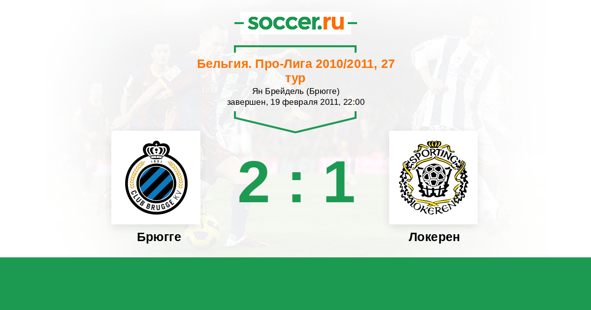 Бельгия. Про-Лига 24.10.2010 Локерен Логотип футбольный клуб Локерен 1:0 Логотип футбольный клуб Брюгге Брюгге