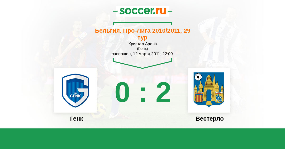 Бельгия. Про-Лига 02.05.2010 Генк Логотип футбольный клуб Генк 2:2 Логотип футбольный клуб Вестерло Вестерло