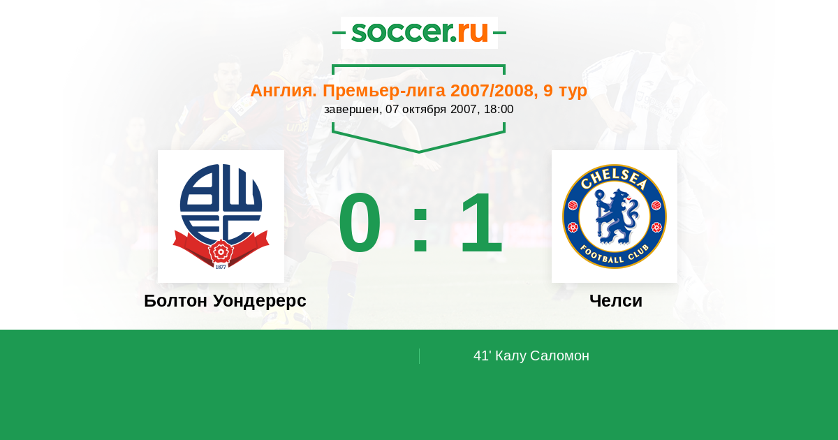 Протокол матча Болтон Уондерерс против Челси