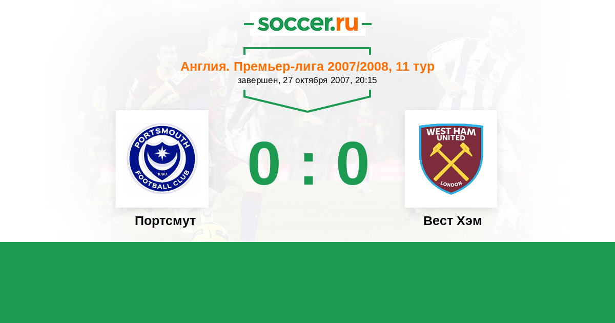 Протокол матча Портсмут против Вест Хэм