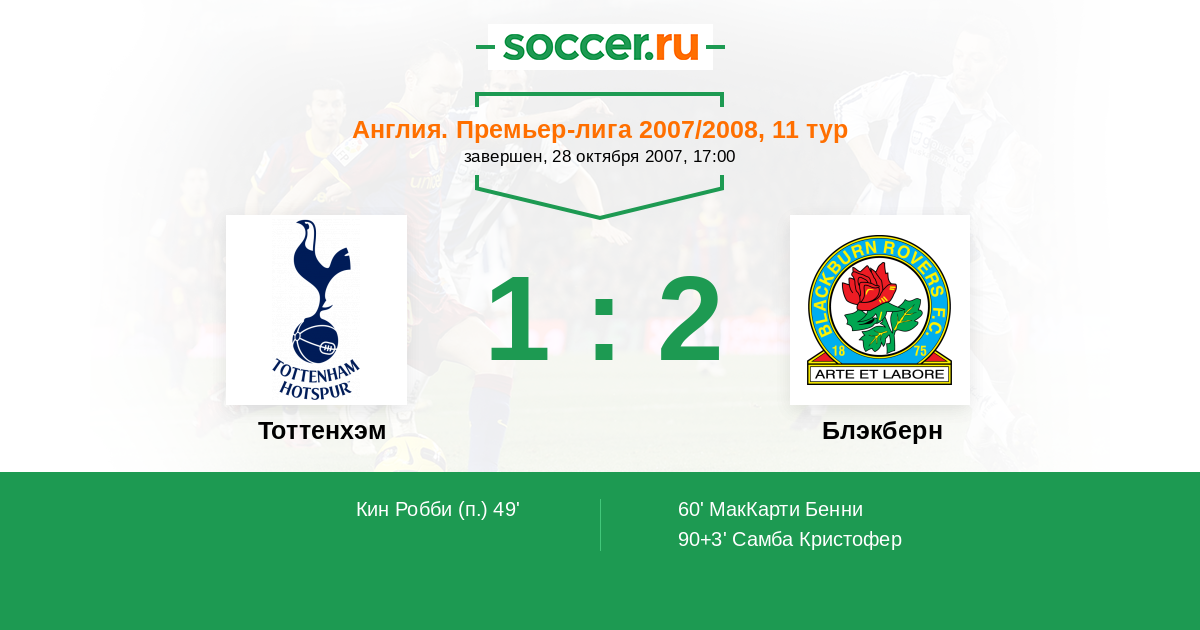 Протокол матча Тоттенхэм против Блэкберн