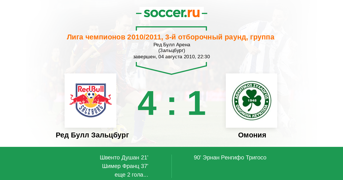 Протокол матча Ред Булл Зальцбург против Омония
