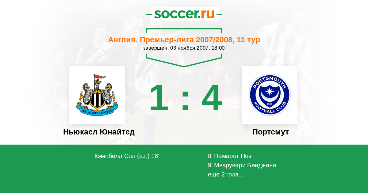 Протокол матча Ньюкасл Юнайтед против Портсмут