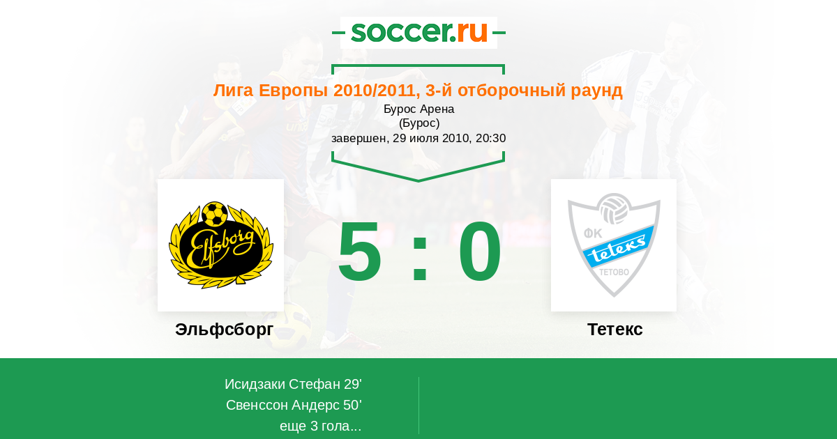 Протокол матча Эльфсборг против Тетекс