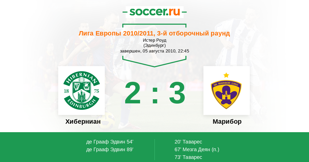 Протокол матча Хиберниан против Марибор