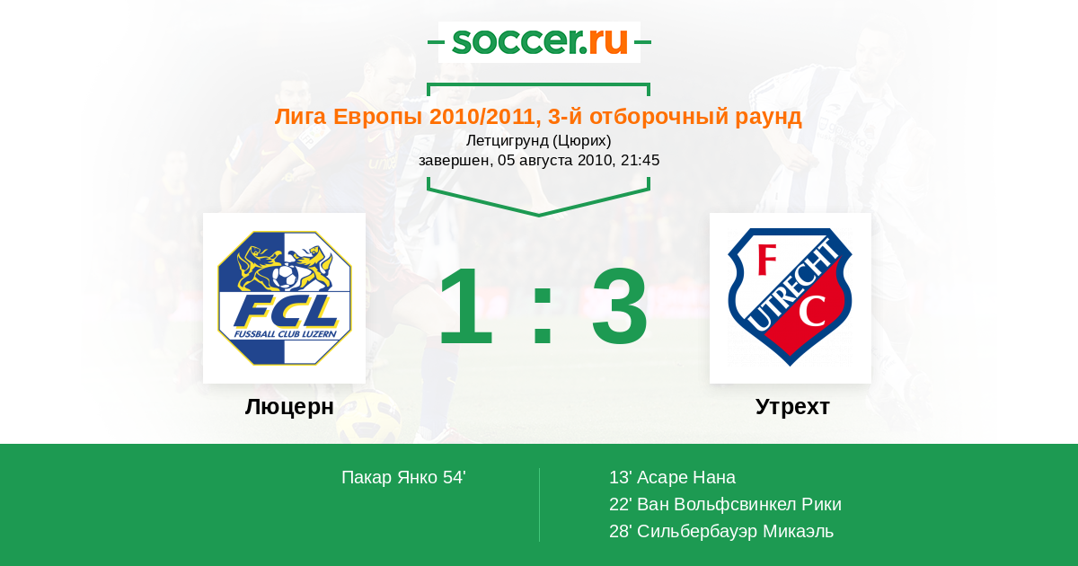 Протокол матча Люцерн против Утрехт
