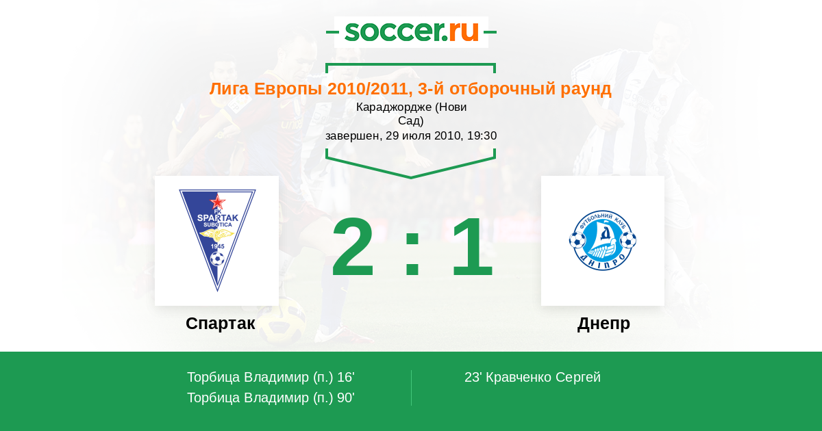 Протокол матча Спартак Суботица против Днепр