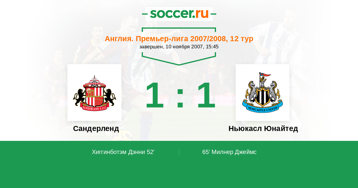 Протокол матча Сандерленд против Ньюкасл Юнайтед