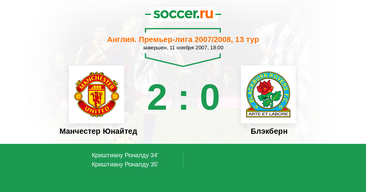 Протокол матча Манчестер Юнайтед против Блэкберн