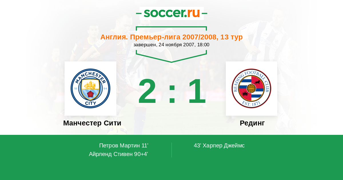 Протокол матча Манчестер Сити против Рединг