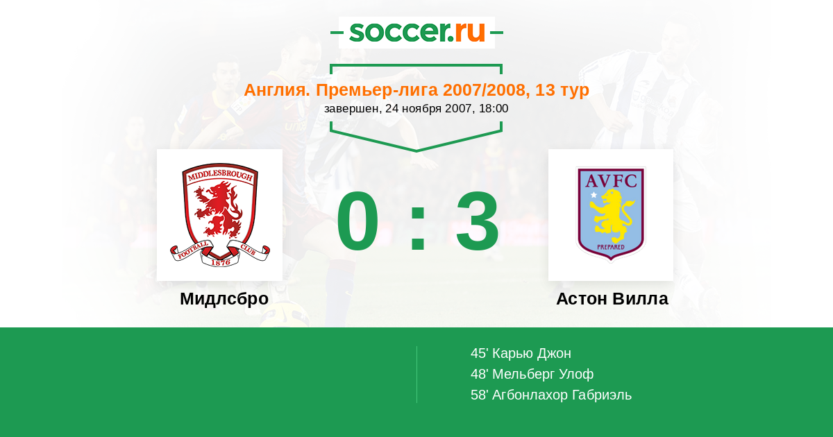 Протокол матча Мидлсбро против Астон Вилла