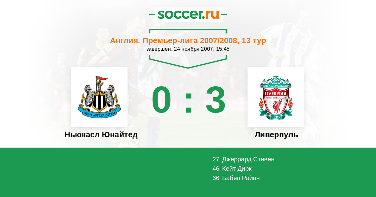 Протокол матча Ньюкасл Юнайтед против Ливерпуль