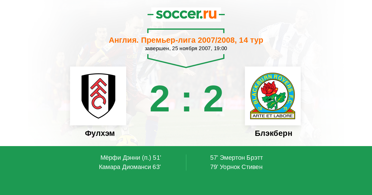 Протокол матча Фулхэм против Блэкберн