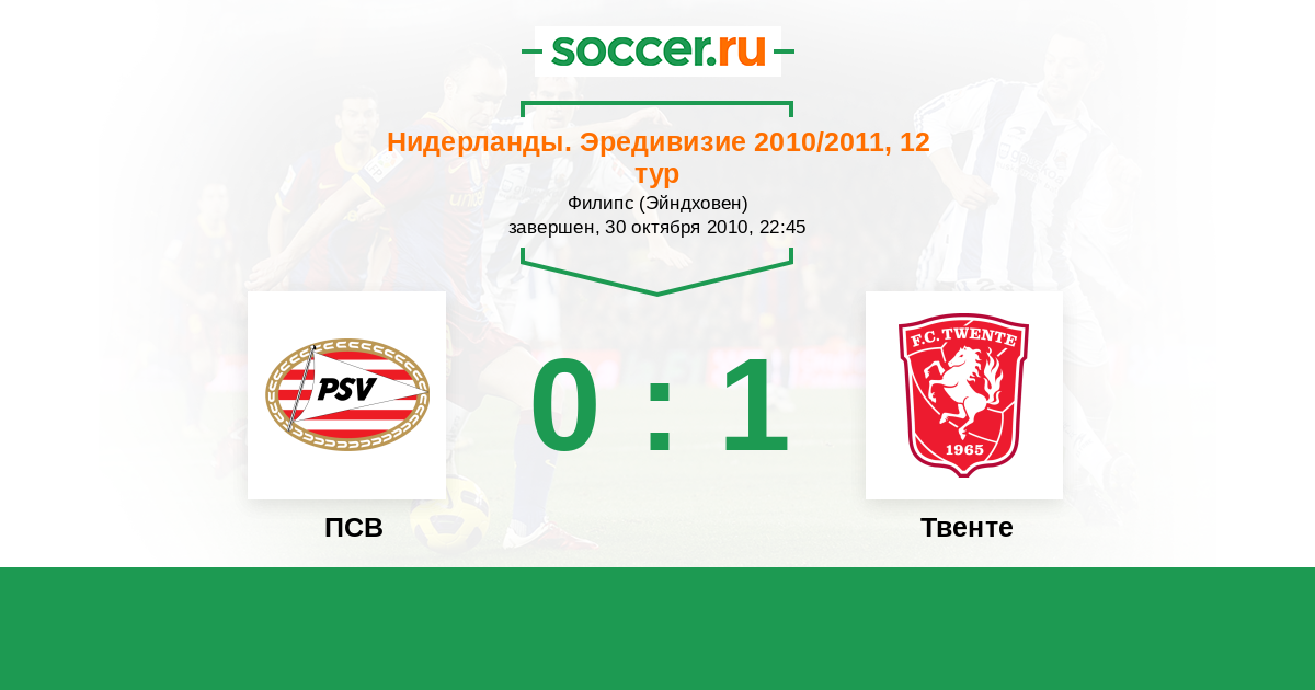Нидерланды. Эредивизи 02.04.2011 Твенте Логотип футбольный клуб Твенте (Энсхеде) 2:0 Логотип футбольный клуб ПСВ (Эйндховен) ПСВ