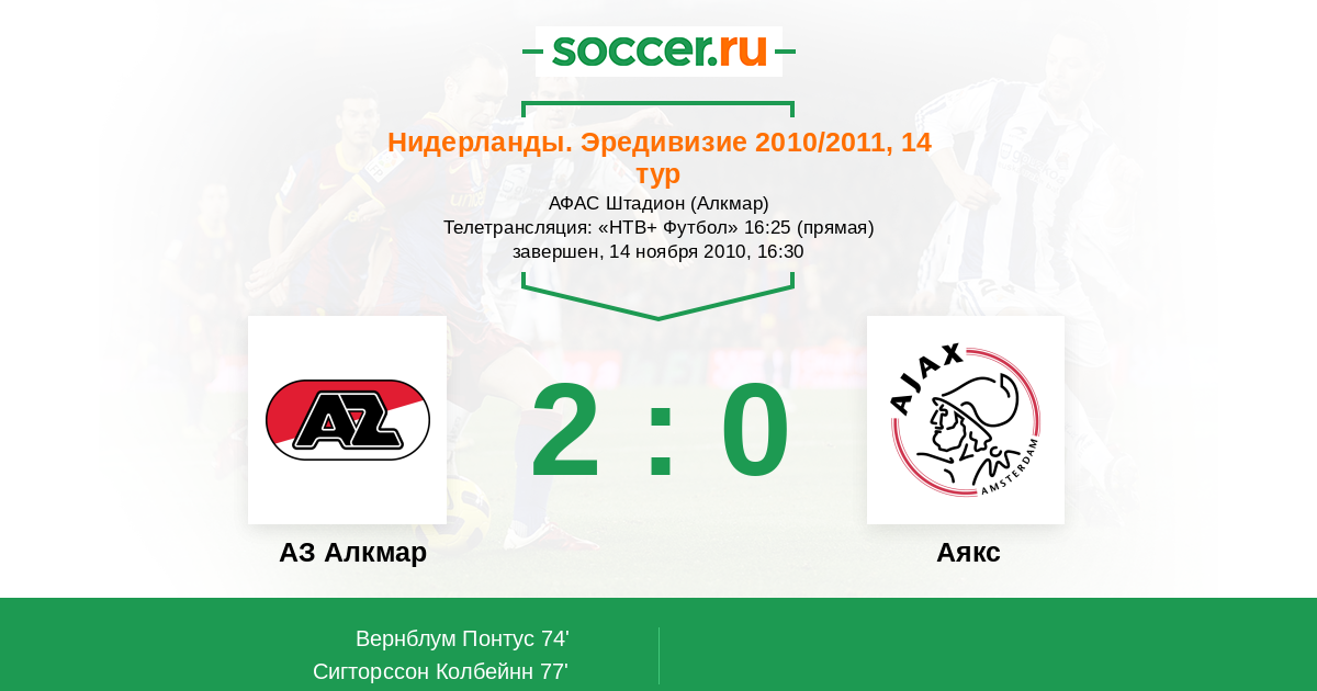 Протокол матча АЗ Алкмар против Аякс