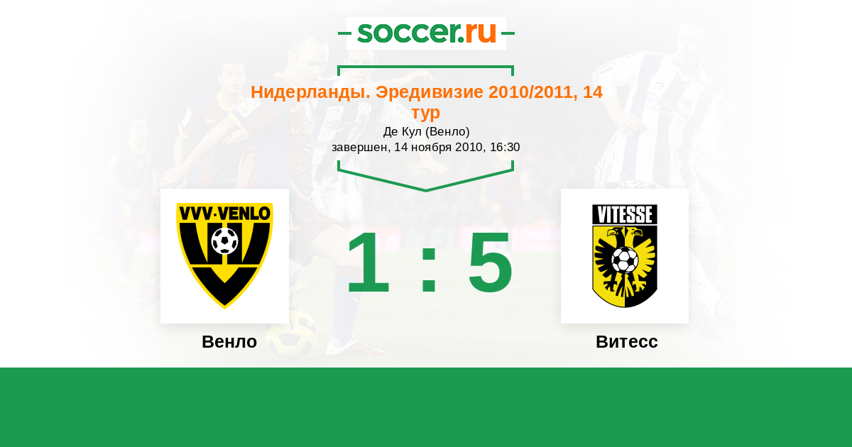 Нидерланды. Эредивизи 05.03.2011 Витесс Логотип футбольный клуб Витесс (Арнем) 2:0 Логотип футбольный клуб Венло Венло