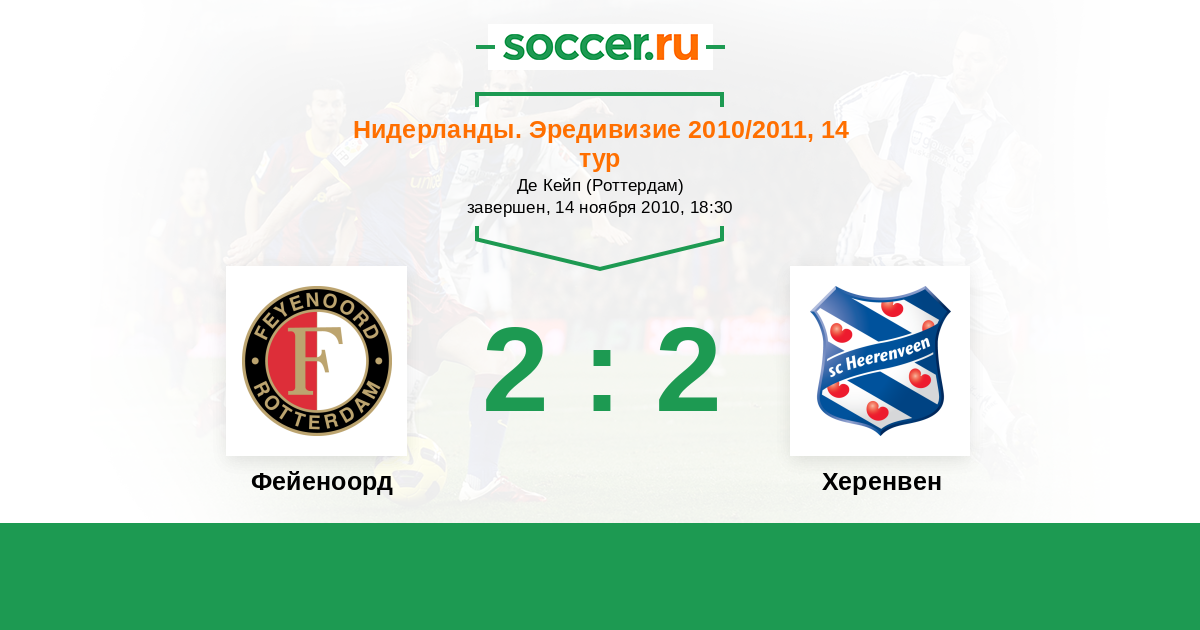 Нидерланды. Эредивизи 06.03.2011 Херенвен Логотип футбольный клуб Херенвен 0:1 Логотип футбольный клуб Фейеноорд (Роттердам) Фейеноорд