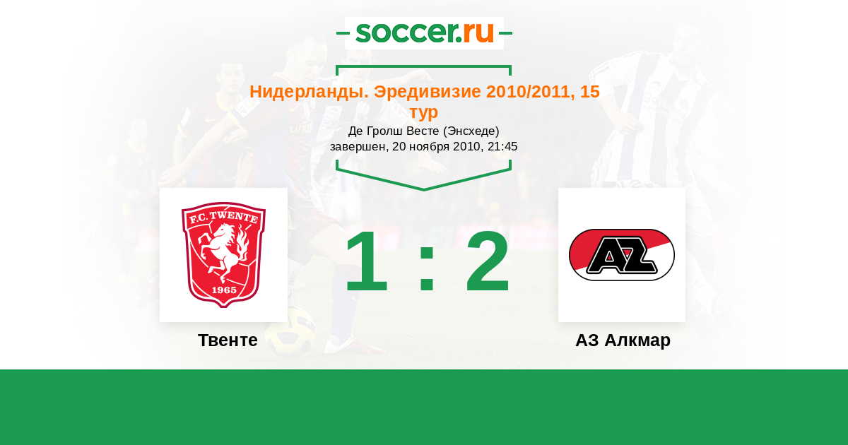 Нидерланды. Эредивизи 07.10.2012 Твенте Логотип футбольный клуб Твенте (Энсхеде) 3:0 Логотип футбольный клуб АЗ Алкмар АЗ Алкмар