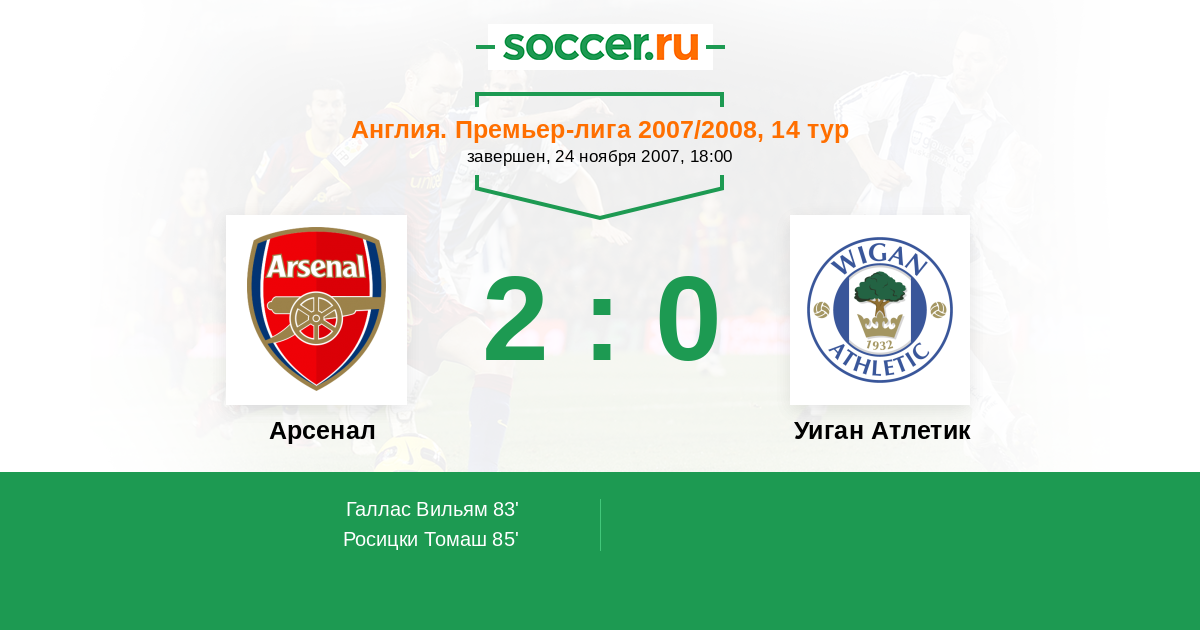 Протокол матча Арсенал против Уиган Атлетик